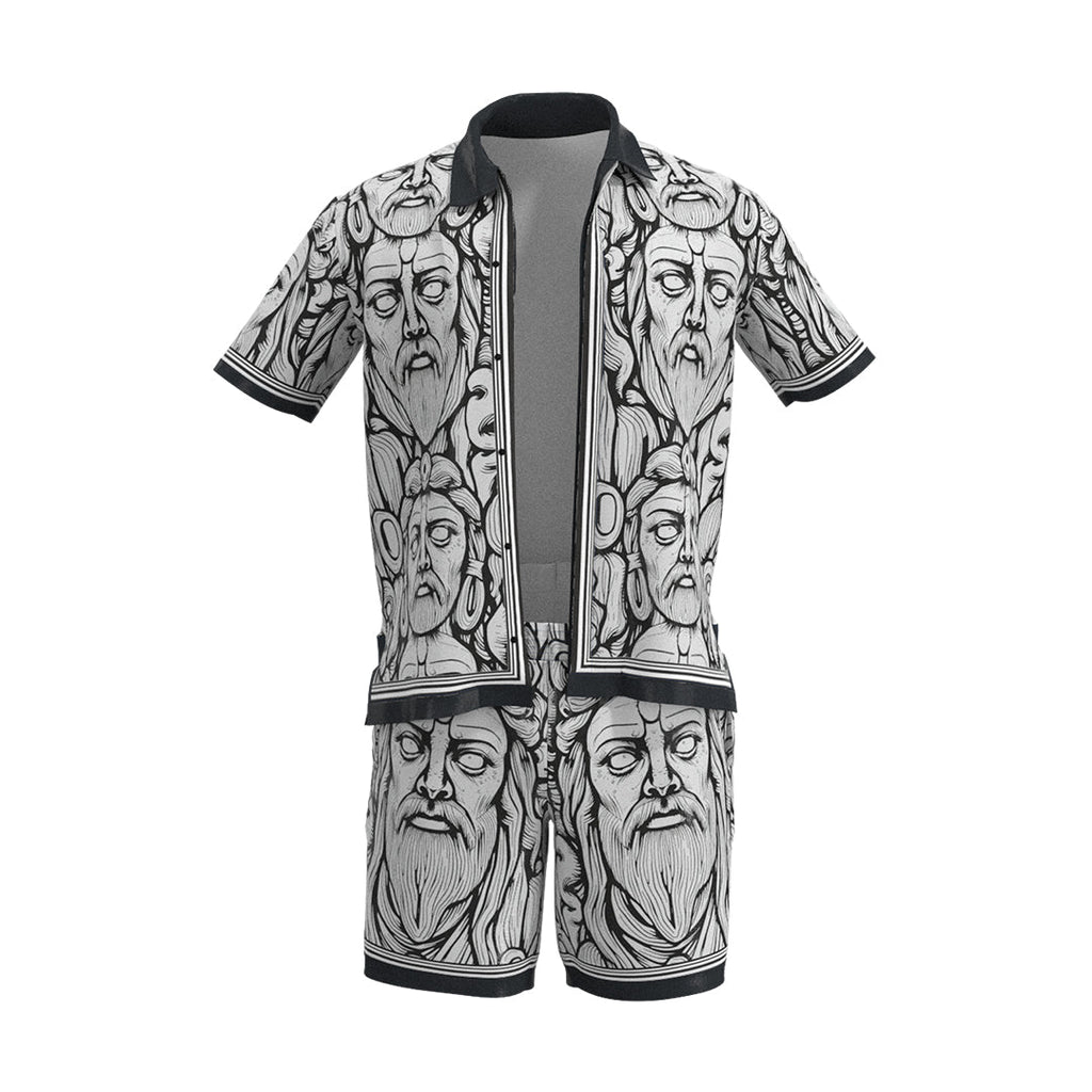 Acesta este un set din două piese, format din cămașă cu mânecă scurtă și pantaloni scurți asortați – perfect pentru un look îndrăzneț de vară și confort pe tot parcursul zilei.
