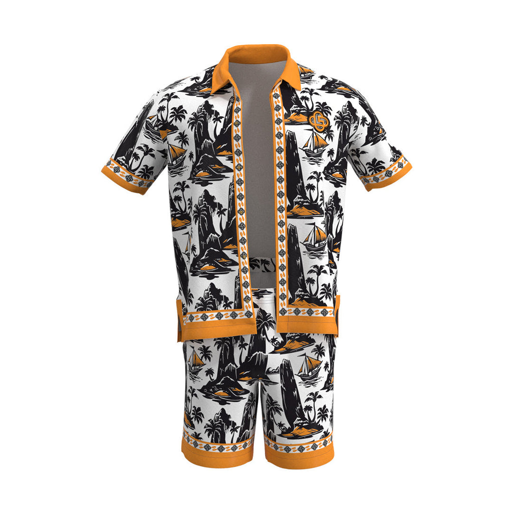 Acesta este un set din două piese, format din cămașă cu mânecă scurtă și pantaloni scurți asortați – perfect pentru un look îndrăzneț de vară și confort pe tot parcursul zilei.