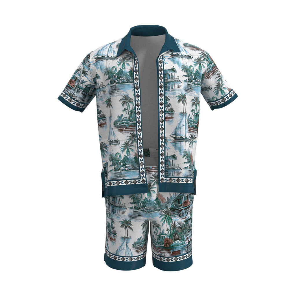 Acesta este un set din două piese, format din cămașă cu mânecă scurtă și pantaloni scurți asortați – perfect pentru un look îndrăzneț de vară și confort pe tot parcursul zilei.