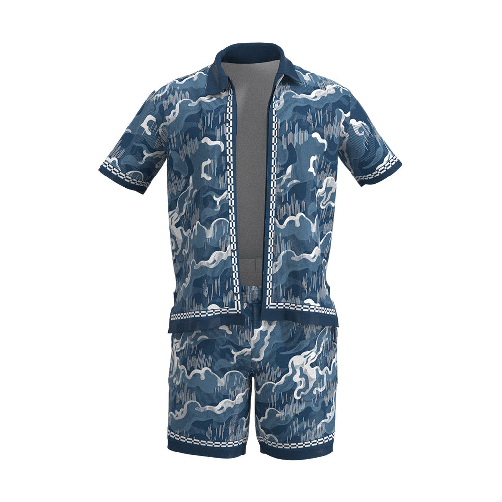 Acesta este un set din două piese, format din cămașă cu mânecă scurtă și pantaloni scurți asortați – perfect pentru un look îndrăzneț de vară și confort pe tot parcursul zilei.